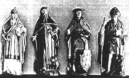 Cornelius, Antonius, Quirinus und Hubertus - Die 2. und die 4. Figur sind bis heute verschwunden |
